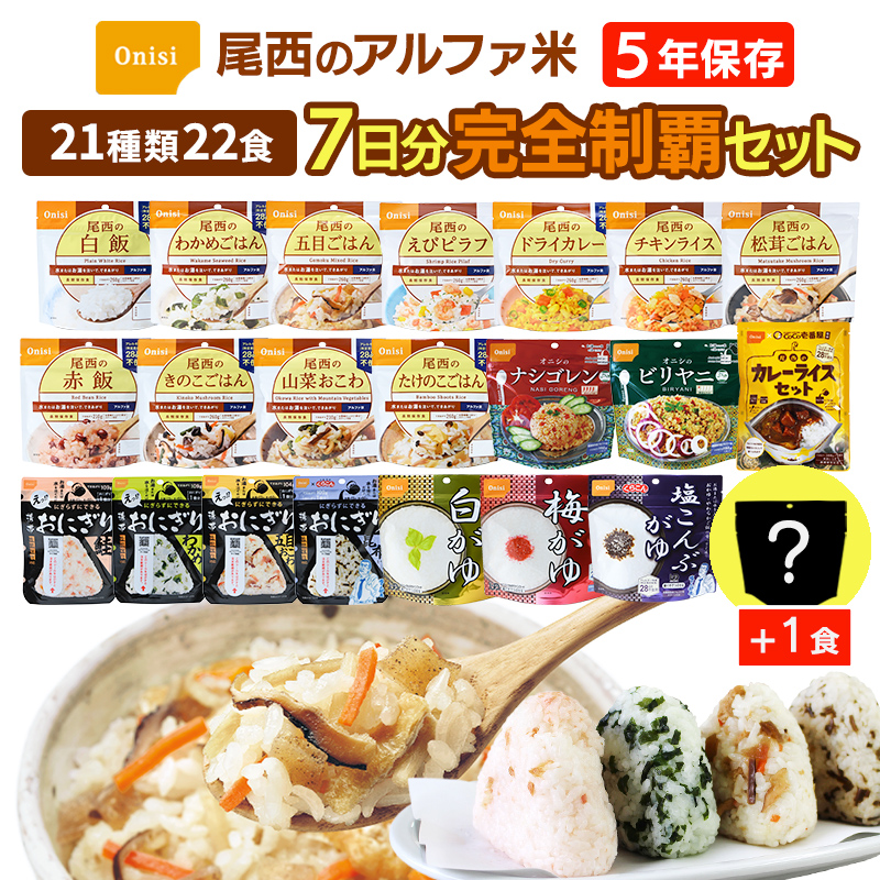 商品 尾西食品 アルファ米 全種類 完全制覇セット 7日分 21種類 22食(21種類+特別セレクト1)
