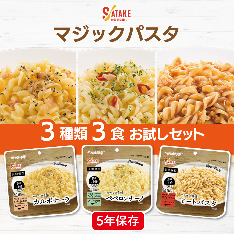 マジックパスタ 3種類 3食 お試しセット サタケ | カルボナーラ ペペロンチーノ ミートパスタ 各1食