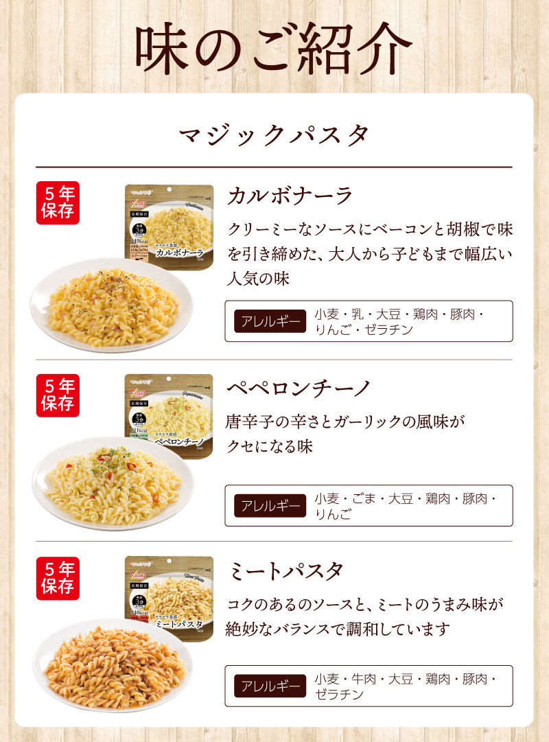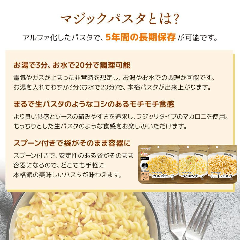 非常食 保存食 パスタ 麺 5年保存 サタケ マジックパスタ サタケ 1袋 | カルボナーラ ペペロンチーノ ミートパスタ