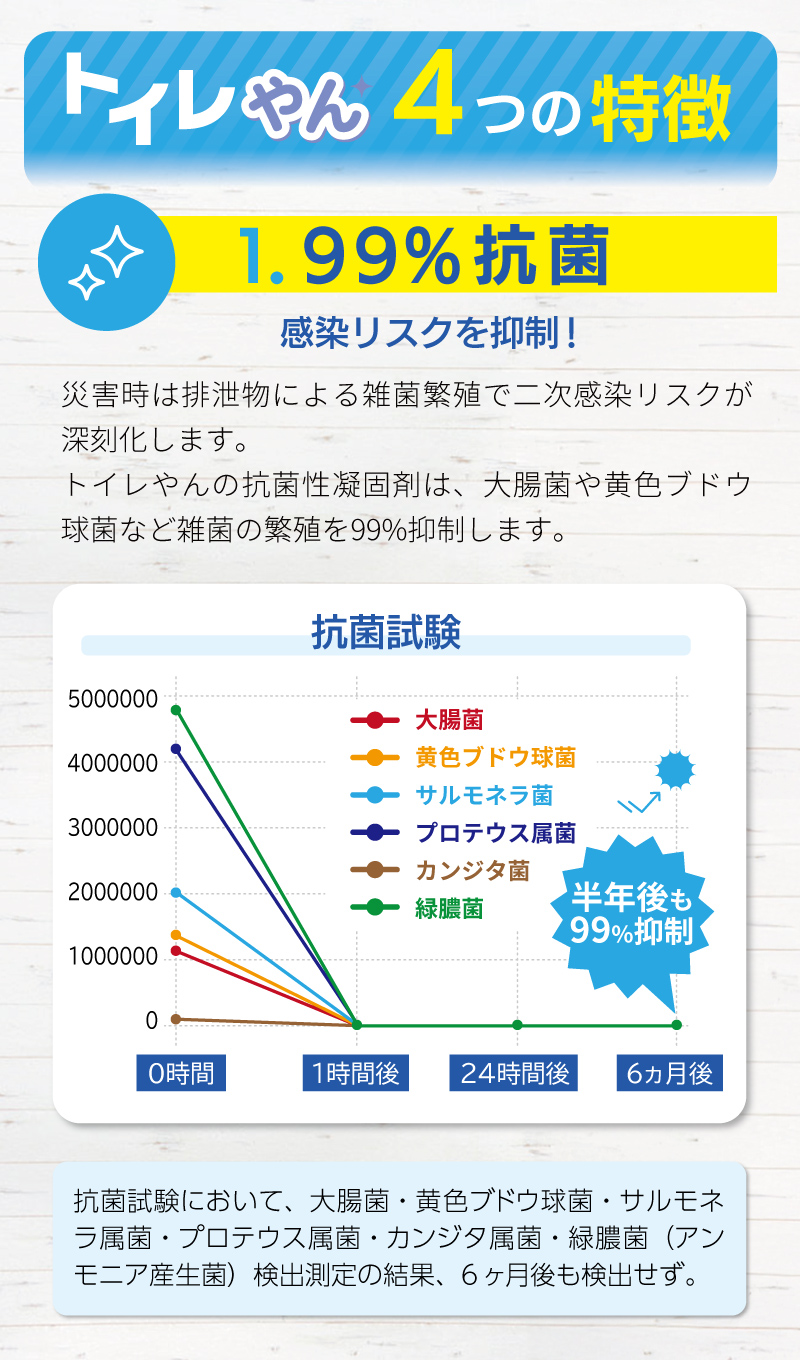 トイレやんは、安心安全の日本製・抗菌消臭タイプの非常用簡易トイレです。
