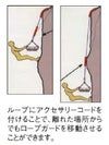 内側にはロープの摩擦熱を抑えるコットンキャンバス地を使用。ループにアクセサリーコードを付けることで、離れた場所からでもロープガードを移動させることができます。