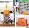 軽量でコンパクトに折りたためる担架です。ベッドから降ろす時、階段・通路を引きずる時など、底面のウレタン素材のクッションが衝撃をやわらげ、スピーディーな救助活動ができます。保管・持ち運びに便利な収納バッグ付。※著しく摩耗の予想される路面や避難訓練でのご使用の際は、防水シート等を併用してください。