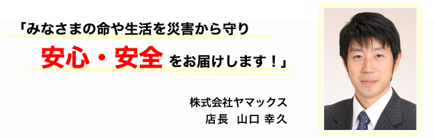 当社のビジョンの実現により、みなさまが日々の生活において、防災対策に不安を感じたり、ご家族の身に危険を感じたりすることが無くなりますことを切に願い申し上げます。当社の社員もみなさまと同じように災害の脅威を感じており、安心・安全をお届けする業務に大きな責務を感じています。それにより、より良いサービスをご提供できると確信をしています。株式会社ヤマックスは、ビジョンの実現を目指し、さらなる成長のために邁進してまいりますので、今後もより一層のご支援とご協力を賜りますよう、お願い申し上げます。